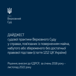 У дайджесті відображено найважливіші правові висновки Великої Палати ВС, Касаційного цивільного суду та Касаційного господарського суду у складі ВС, сформульовані під час розгляду справ, пов’язаних із застосуванням статті 1212 ЦК України, стосовно: