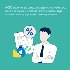 КГС ВС відступив від висновків про визнання грошових вимог забезпеченого кредитора у вигляді пені, підтвердженої судом