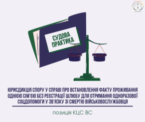 Юрисдикція спору у справі про встановлення факту проживання однією сім’єю без реєстрації шлюбу для отримання одноразової соцдопомоги у зв’язку зі смертю військовослужбовця: постанова КЦС ВС