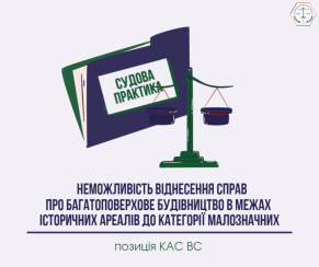 Таким чином, враховуючи предмет позову, складність справи та значення справи для сторін та суспільства, справи про багатоповерхове будівництво в межах історичних ареалів міст не належать до малозначних з огляду на їхню значущість для збереження історично-культурного середовища України.