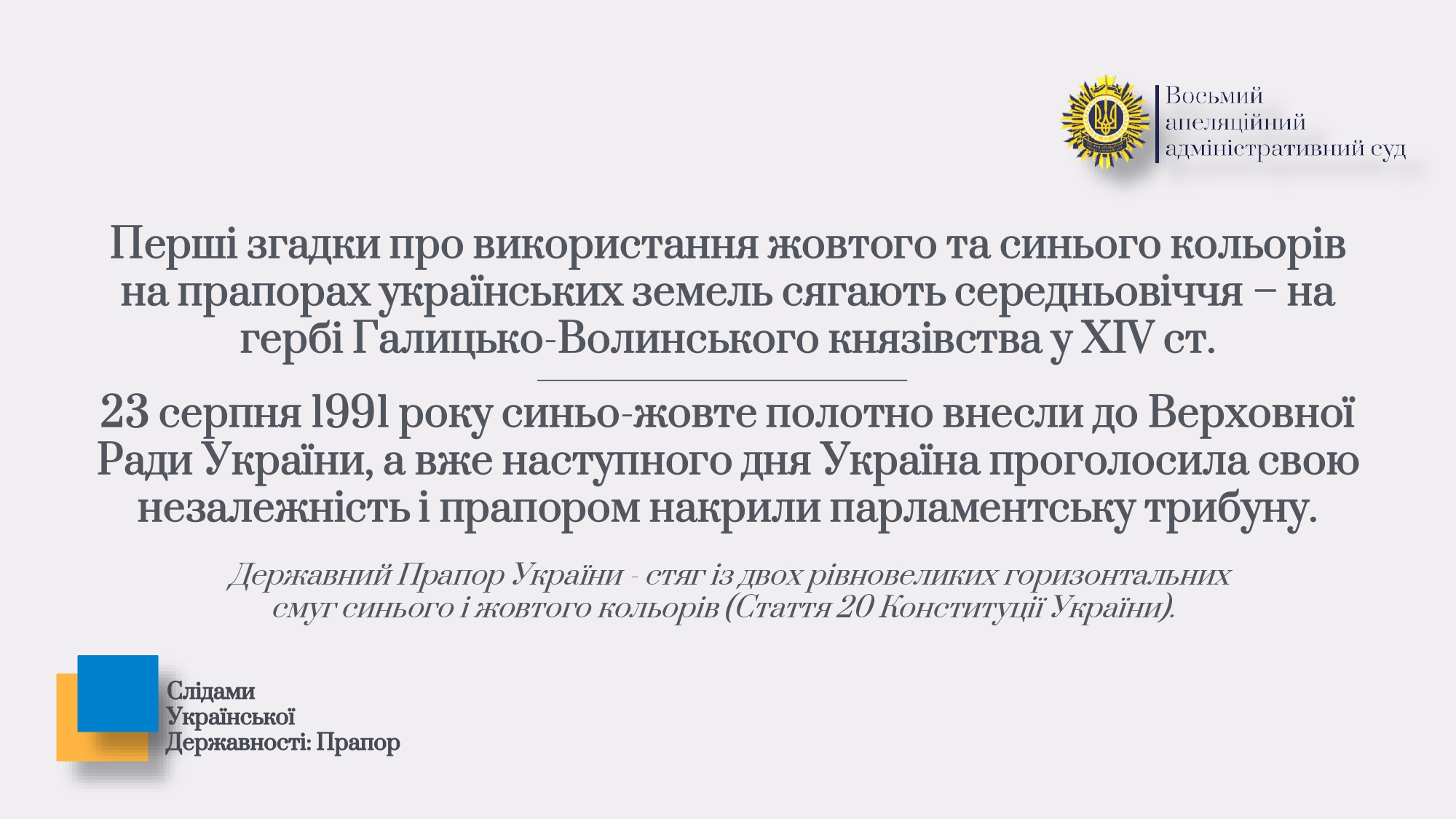 З цієї нагоди Восьмий ААС виокремив добірку атрибутів становлення української державності, серед яких мова, територія, збройні сили, грошова одиниця, прапор, гімн та герб.