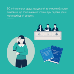 Такого висновку дійшов Верховний Суд, змінивши рішення судів першої та апеляційної інстанцій і перекваліфікувавши дії жінки, яка заподіяла смертельні ушкодження своєму знайомому під час конфлікту з ним, з умисного вбивства (ч. 1 ст. 115 КК України) на умисне вбивство при перевищенні меж необхідної оборони (ст. 118 КК України).