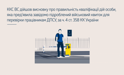 ККС ВС дійшов висновку про правильність кваліфікації дій особи, яка пред’явила завідомо підроблений військовий квиток для перевірки працівникам ДПСУ, за ч. 4 ст. 358 КК України