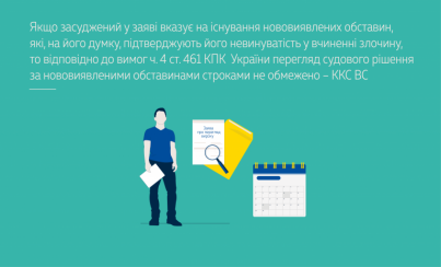 ККС ВС зазначив, що відповідно до ч. 4 ст. 461 КПК України за наявності обставин, які підтверджують невинуватість засудженого або вчинення ним менш тяжкого кримінального правопорушення, перегляд судового рішення за нововиявленими обставинами строками не обмежено.