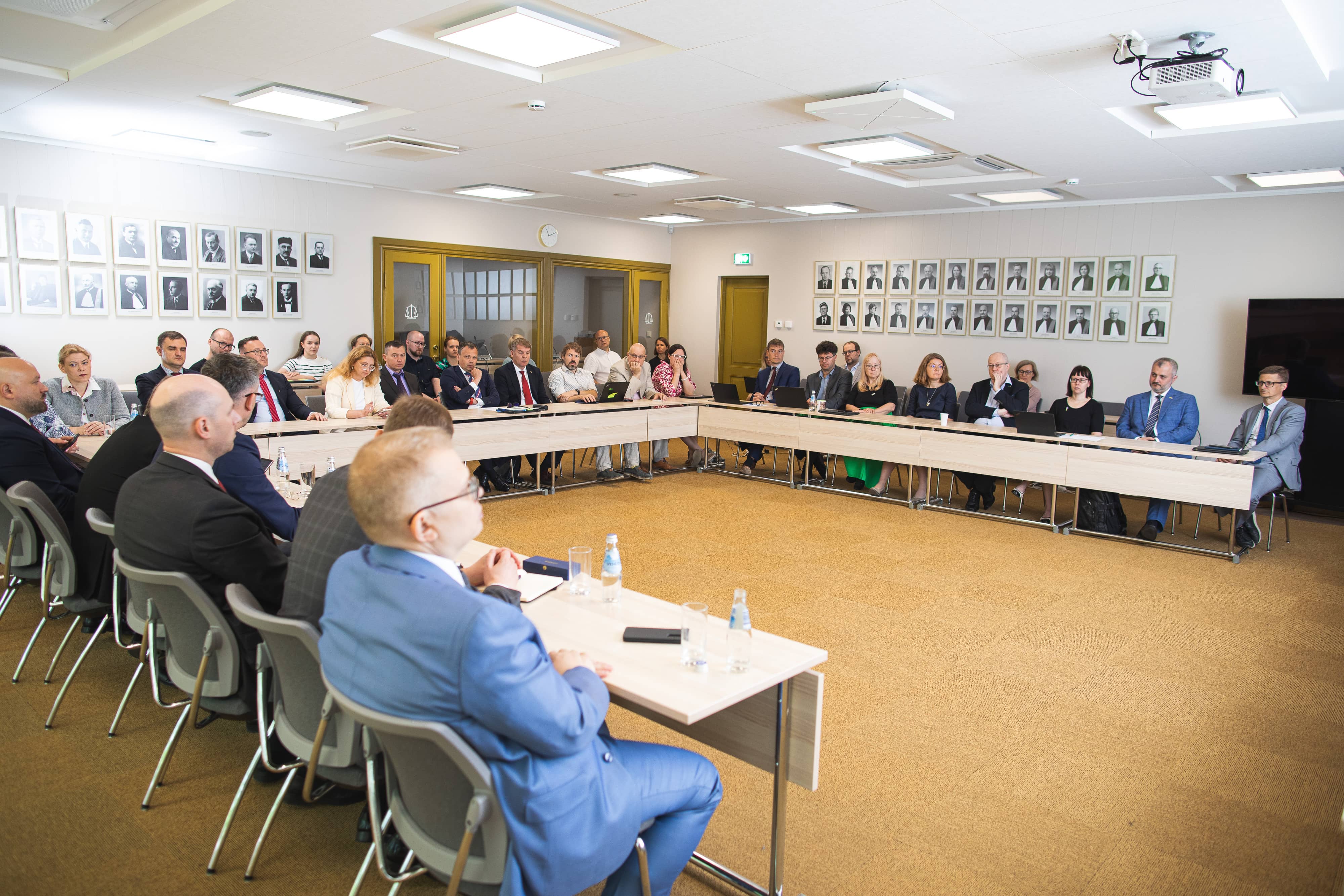 Під час зустрічі у Верховному Суді Естонії з його Головою Віллу Кове та суддями цього суду обговорили подальшу співпрацю між судами держав – членів ЄС і запити щодо отримання попередньої ухвали. У своїй презентації, присвяченій здійсненню правосуддя в умовах воєнного часу, Юрій Чумак розповів про щоденну роботу судів на неокупованих і звільнених територіях, стан судової влади в цілому та її функціонування в умовах сьогодення, навів конкретні цифри щодо кількості справ, які перебували на розгляді в українських судах у 2023 році. Відповідаючи на запитання аудиторії, члени делегації суддів з України розповіли про розгляд справ щодо України в Європейському суді з прав людини, можливість конфіскації російських активів шляхом проведення конституційного перегляду відповідного законодавства Естонії та практику такої конфіскації в Україні. Серед іншого, сплановане двостороннє надання правової допомоги (інформування про законодавство і судову практику) та обмін методичними матеріалами. Естонські колеги висловилися на підтримку вступу України до ЄС та зауважили, що наша держава робить усе належне для реалізації цього плану. Також представникам української делегації було презентовано «Центр реєстрів та інформаційних систем: Реєстр електронного бізнесу».