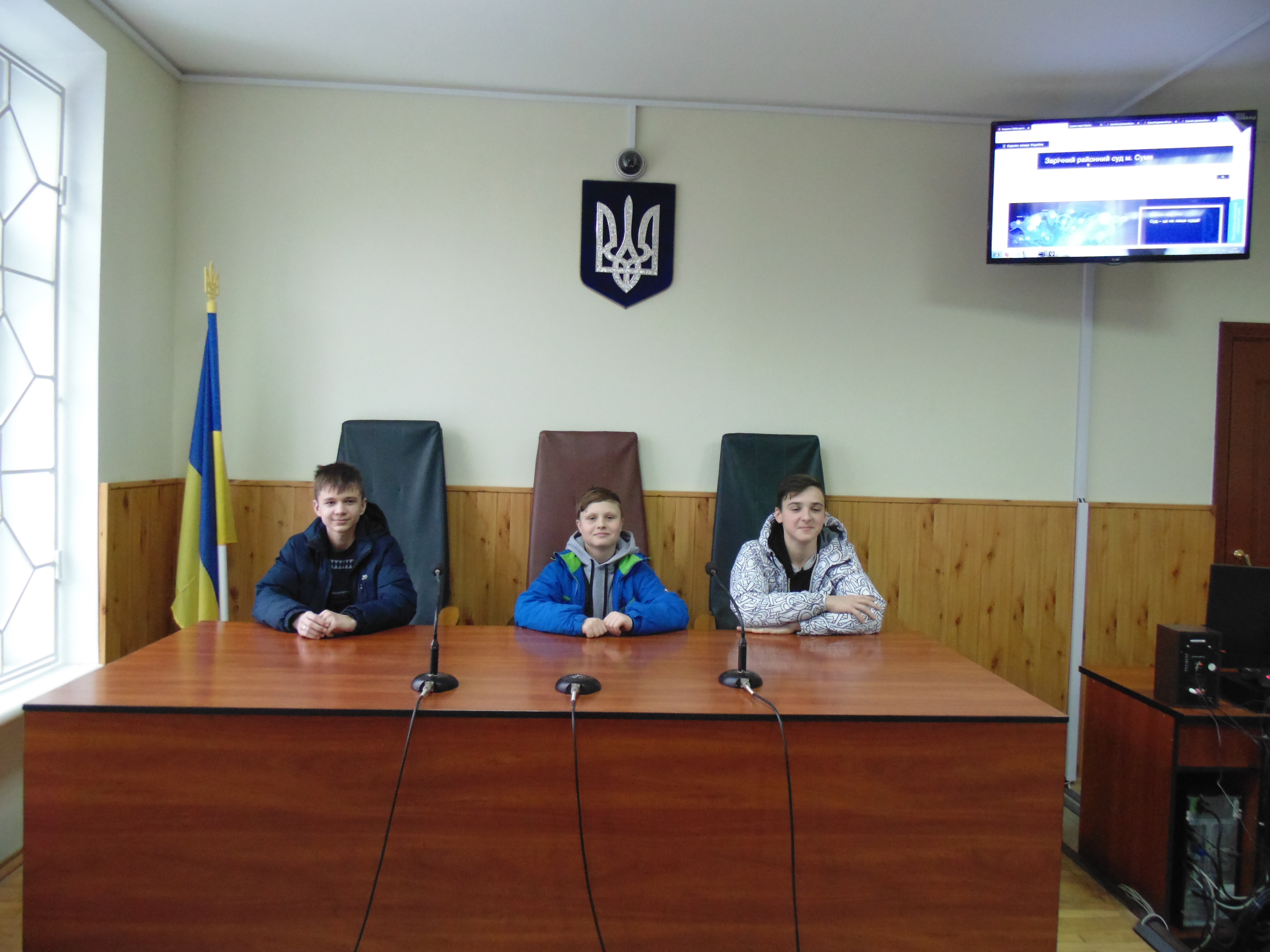 Потім юних відвідувачів запросили до зали судових засідань, де вони спілкувалися із керівником апарату суду Аллою Шевченко. У форматі відкритого діалогу разом із керівником апарату школярі з’ясували, які саме місця в залі судового засідання займають судді, прокурори, адвокати, секретар судового засідання, а також підозрюваний чи обвинувачений. Разом з’ясували, що до судді потрібно звертатися словами «Ваша честь», а усім присутнім у залі судового засідання потрібно вставати коли суддя заходить чи виходить із залу.