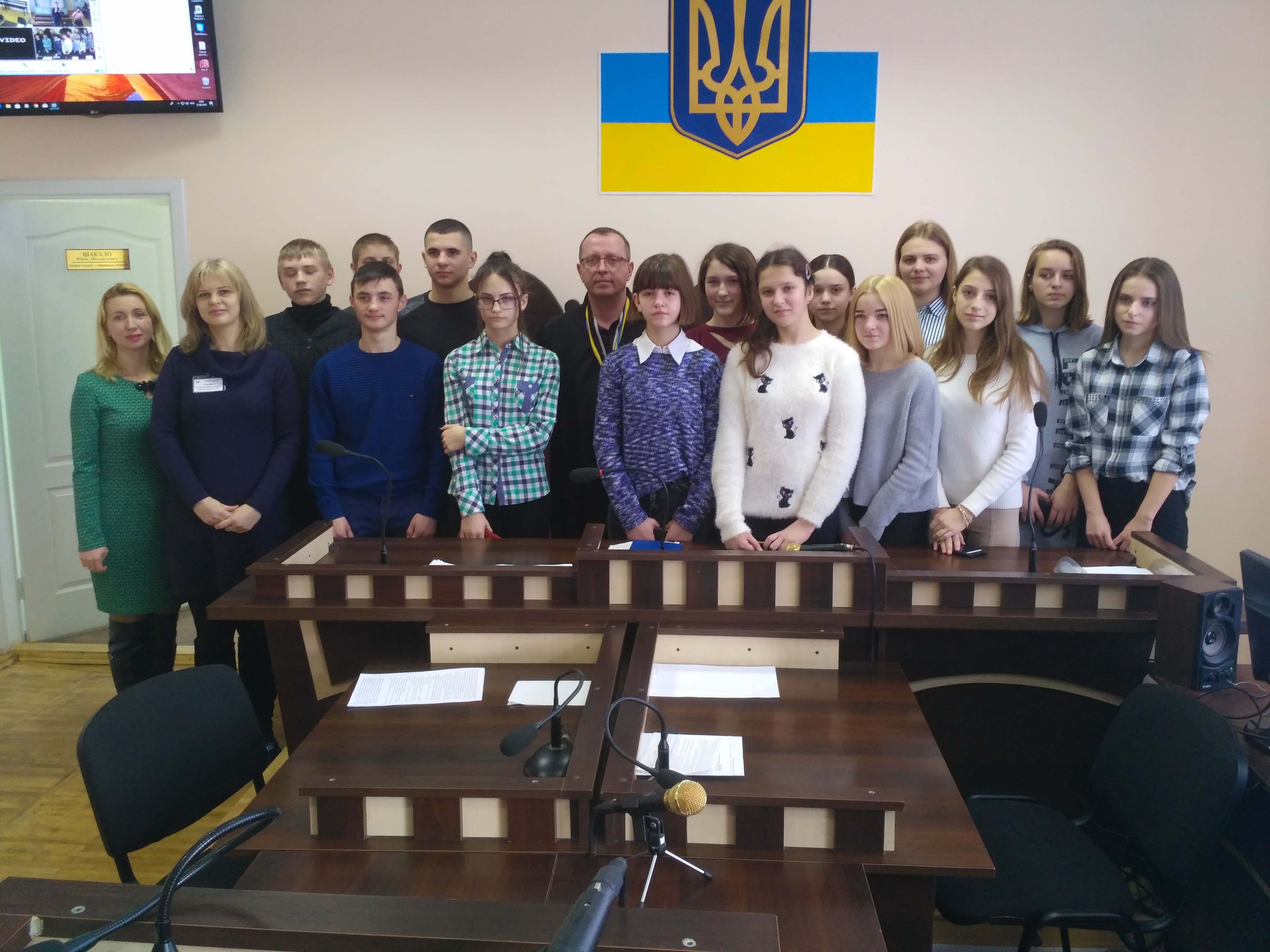Першим кроком цього ознайомлення стало відвідування зали судового засідання, де з учасниками заходу провів бесіду голова суду Шелюховський М.В., який одразу ж запросив до себе у крісло судді старосту класу. Він розповів про роботу судді, категорії справ, які розглядаються в місцевих судах, про загородження, яке відокремлює обвинувачених (підсудних), засуджених від складу суду та присутніх, що відповідає європейським стандартам, про розгляд справ за участі присяжних та ін. Дав відповіді на запитання дітей та вчителя.