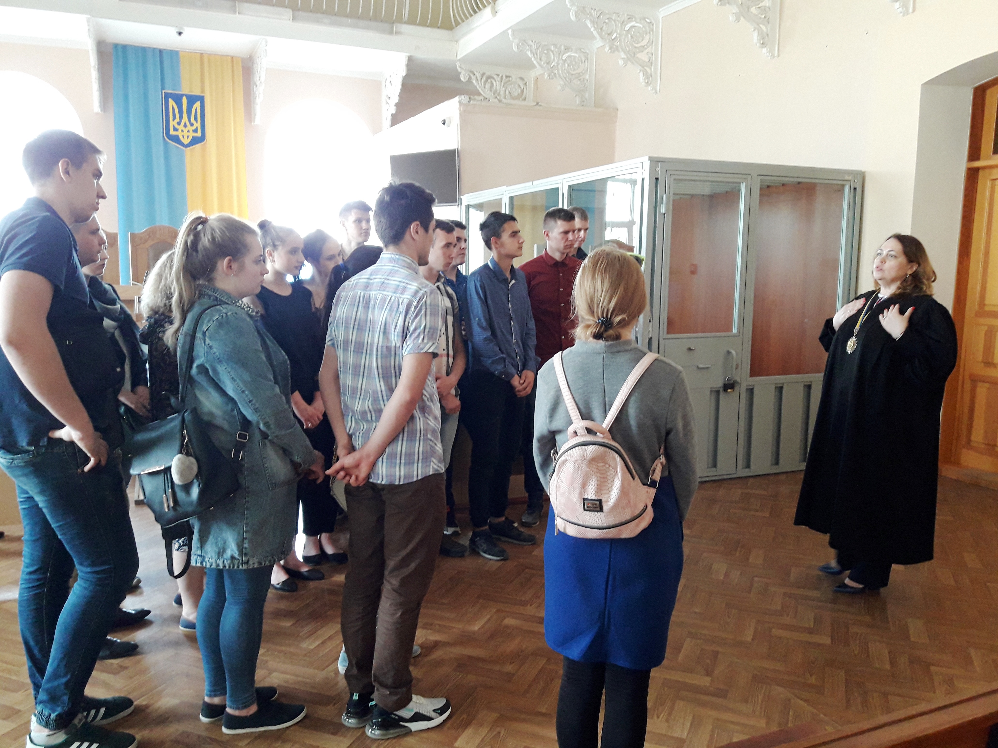 Студенти відвідали зали судових засідань, кримінальну та цивільну канцелярії, де дізналися про реєстрацію та рух документів, що надходять до суду, ознайомились з порядком автоматизованого розподілу справ між суддями, проведенням судових засідань у режимі відеоконференції, спустилися до підвального приміщення суду, де оглянули камери тримання затриманих, підозрюваних і засуджених осіб.