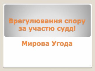 За Цивільним процесуальним кодексом в України від 03 жовтня 2017 року, який набрав законної сили від 15 грудня 2018 року, з’явилась нова стадія цивільного процесу, яка полягає у мирному врегулюванні спору – «врегулювання спору за участі судді».