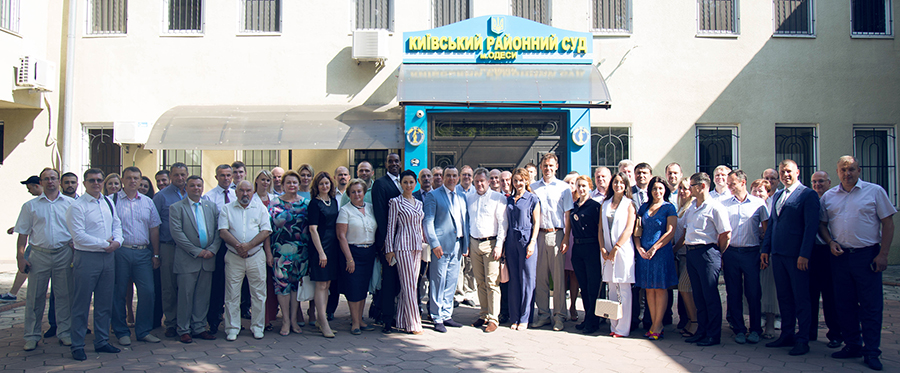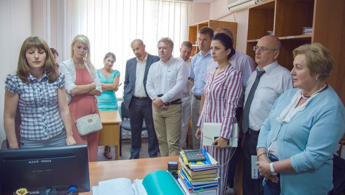 Гості суду, зокрема, голова Вищої ради юстиції Ігор Бенедесюк, член Вищої кваліфікаційної комісії суддів України Павло Луцюк, Голова Державної судової адміністрації України Зеновій Холодюк, начальник територіального управління ДСА України в Одеській області Володимир Куценко, голова Київського районного суду м. Одеси Сергій Чванкін, суддя Київського районного суду м. Одеси Володимир Петренко, заступник голови Ради суддів України Богдан Моніч, керівник Проекту USAID "Справедливе правосуддя" Девід Вон, спеціаліст з питань права та судового адміністрування Проекту USAID "Справедливе правосуддя" Сергій Сученко, заступник Міністра юстиції України Сергій Шкляр, судді, керівники апаратів судів Одещини відвідали судове засідання, де розглядалась справа, подана в електронному вигляді. Справу слухала суддя Оксана Куриленко. Під час судового засідання подані адвокатом документи сканувались у залі суду та долучались до електронної справи, що відображалось на екранах моніторів.
