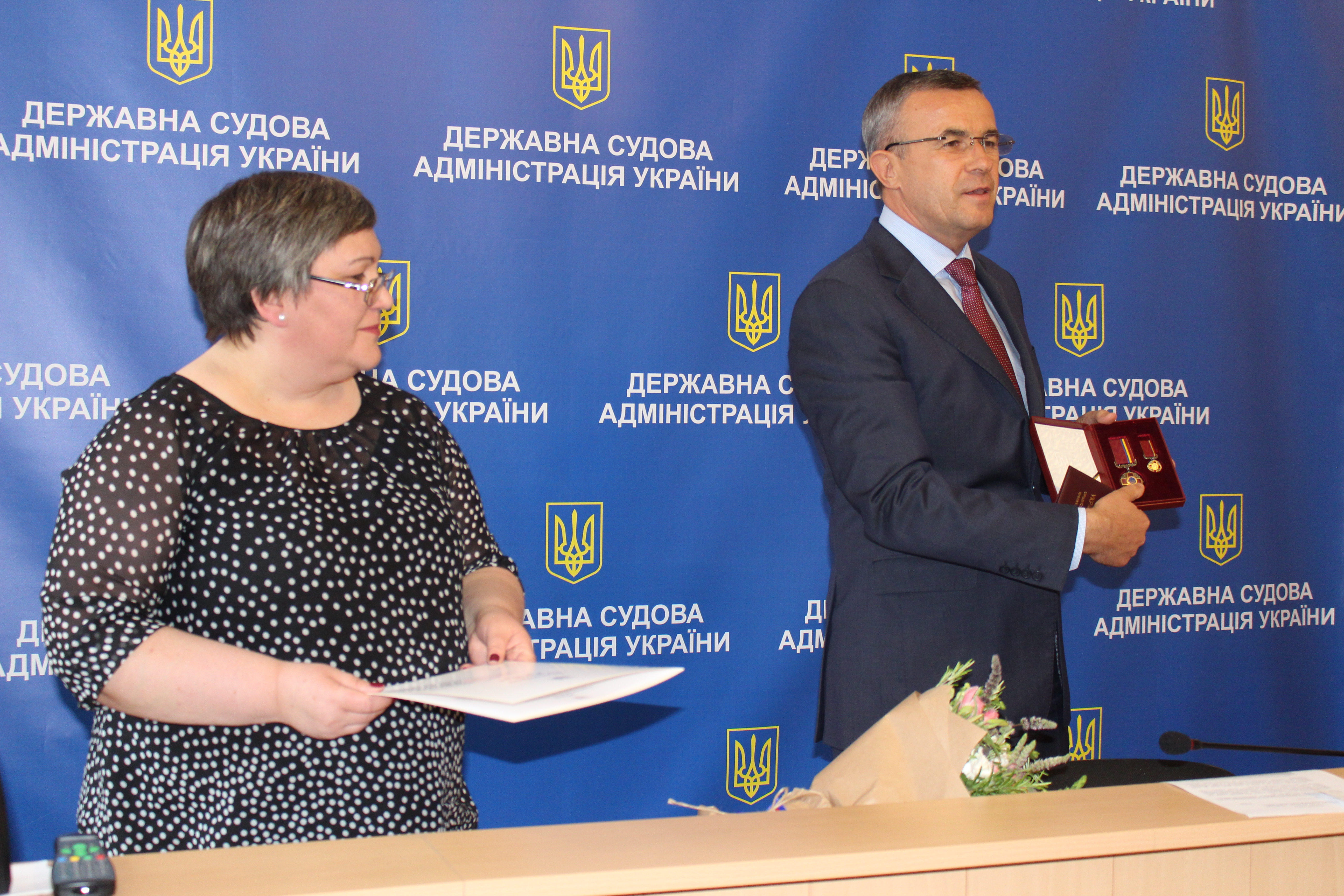 Голова Державної судової адміністрації України Зеновій Холоднюк за дорученням Президента України Петра Порошенка вручив державну нагороду України орден "За заслуги" ІІІ ступеня заступнику Голови Державної судової адміністрації України Ользі Булці.